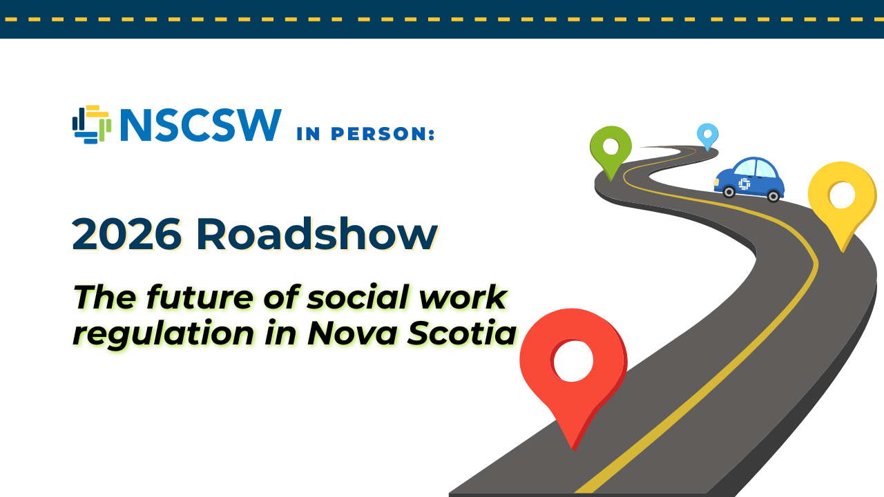 NSCSW staff are travelling across the province to meet with members in person. Our roadshow offers an opportunity for social workers in Nova Scotia to better understand the regulatory framework under the RHPA, provide feedback and insights related to governance and professional regulation in social work practice, and meet other social workers.